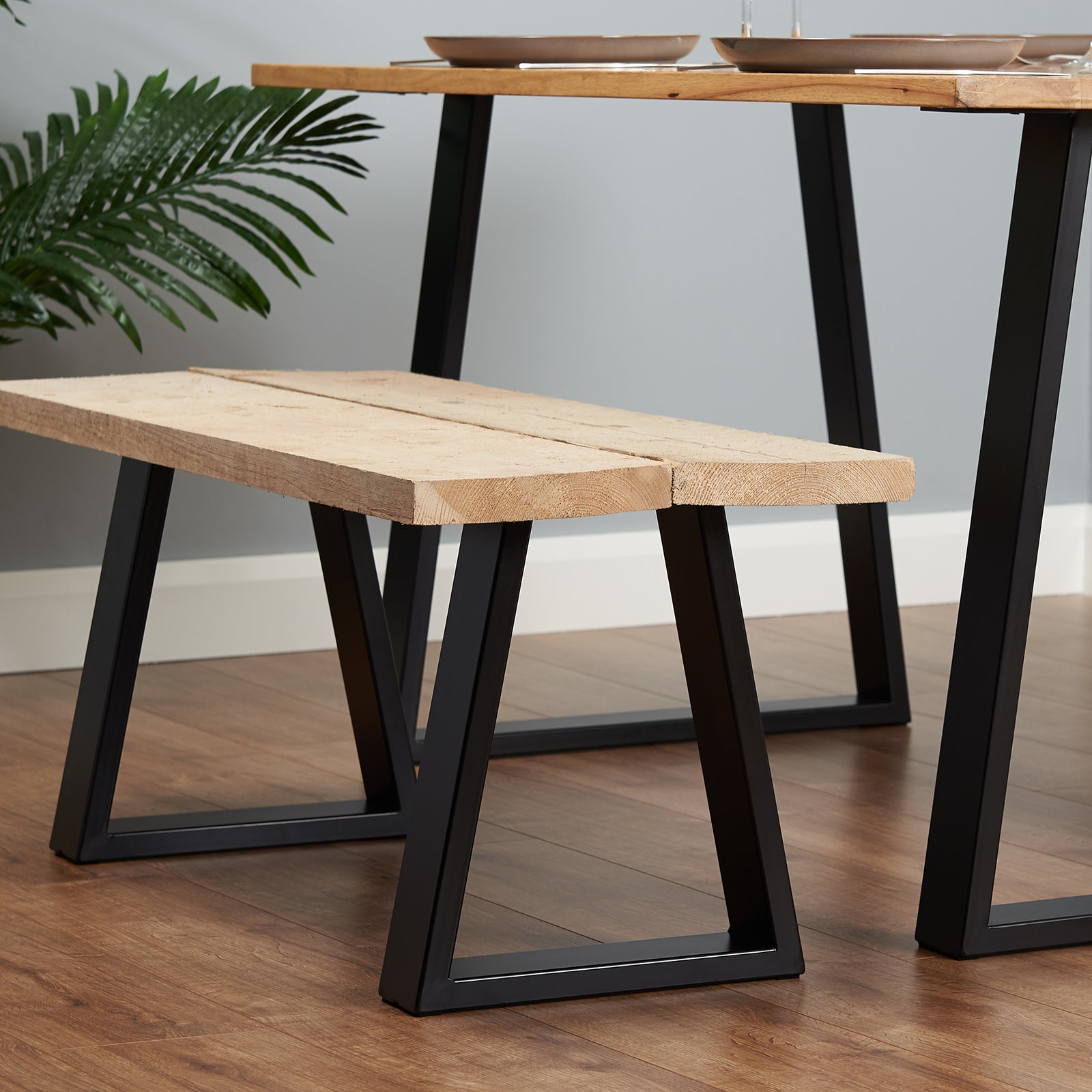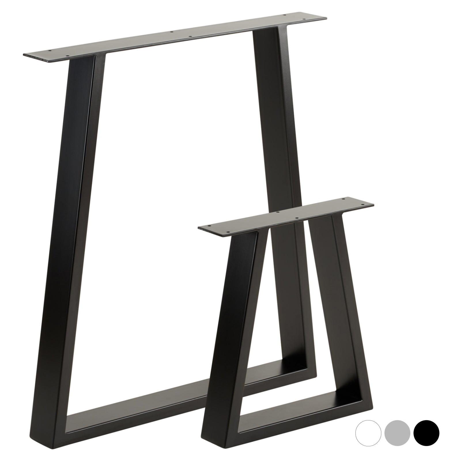 Create your own contemporary table with our Industrial Trapezium Table Legs. The strong steel construction provides a sturdy base for tables and benches. Available in a range of sizes, with a black or clear coat finish.